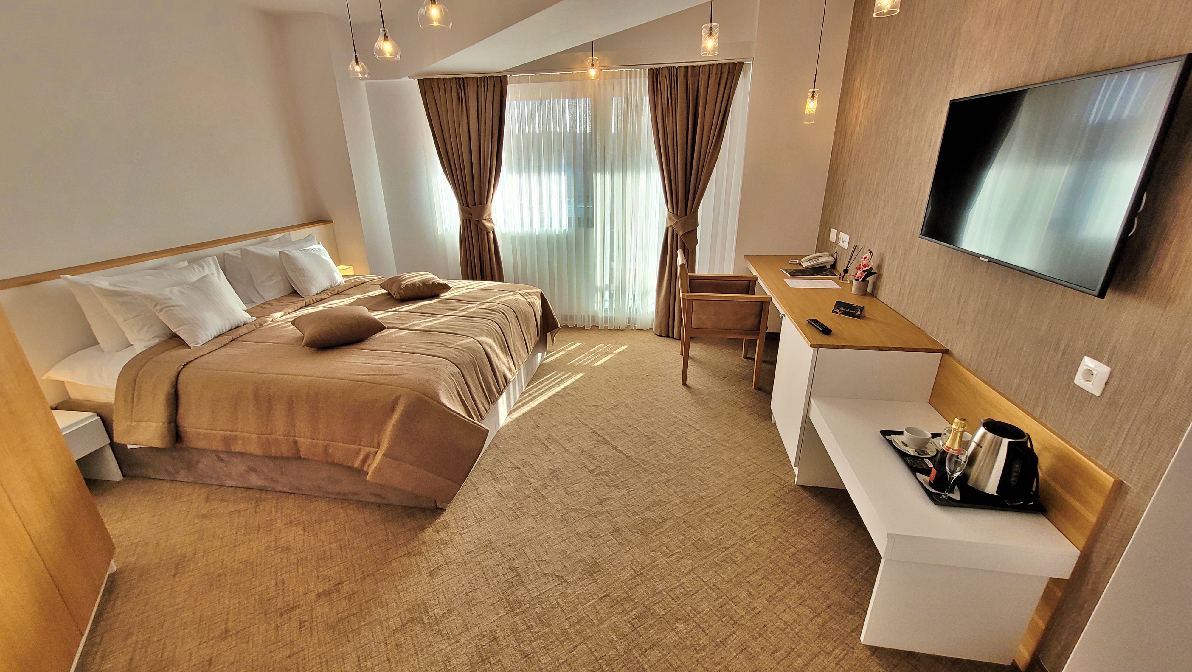 - Camerele premium sunt opțiunea ideală pentru cei care doresc să fie înconjurați de rafinament și confort, cu o priveliște superbă asupra orașului sau a Dunării.